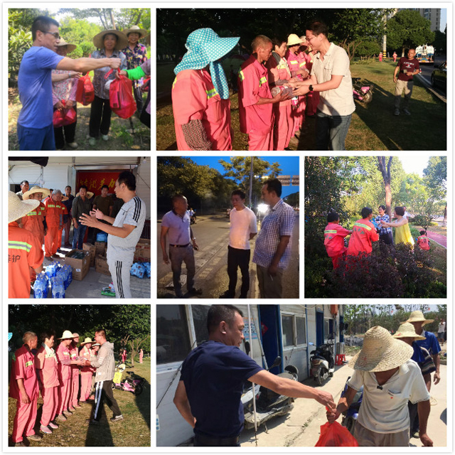 7月29日,公司董事長張豪帶隊,領(lǐng)導(dǎo)班子成員分別在無錫、南通、江陰苗圃等地慰問了工程施工和養(yǎng)護(hù)作業(yè)人員,為這些斗酷暑的工人們送去了花露水、毛巾、西瓜等清涼物資,讓他們感覺到夏日里清涼的關(guān)懷。